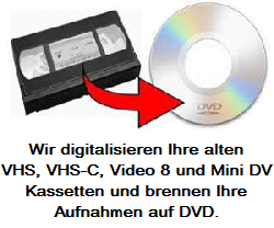 | Wir digitalisieren für Sie Ihre VHS, VHS-C, Video 8, Hi8, MiniDV Kassetten. |
